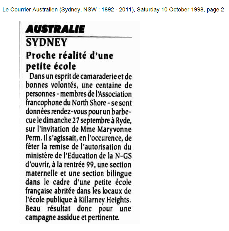 With thanks to Le Courrier Australien for sharing this article from their archives, marking the founding of the FANS bilingual program at KHPS: