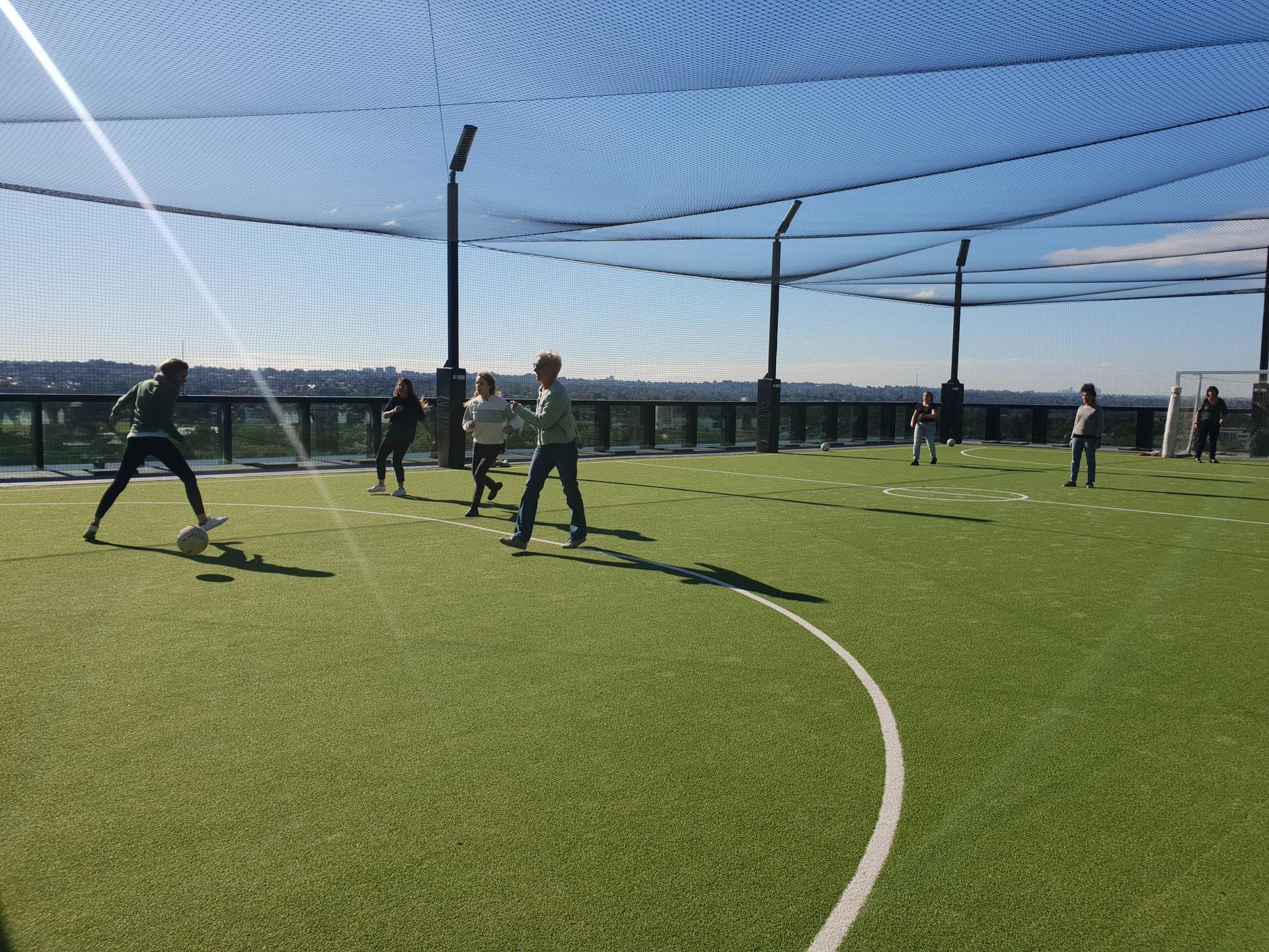 They were presented a model of lesson in Greek that they then adapted to French. Following these intense few hours of work, they engaged in a highly competitive soccer game on the roof!